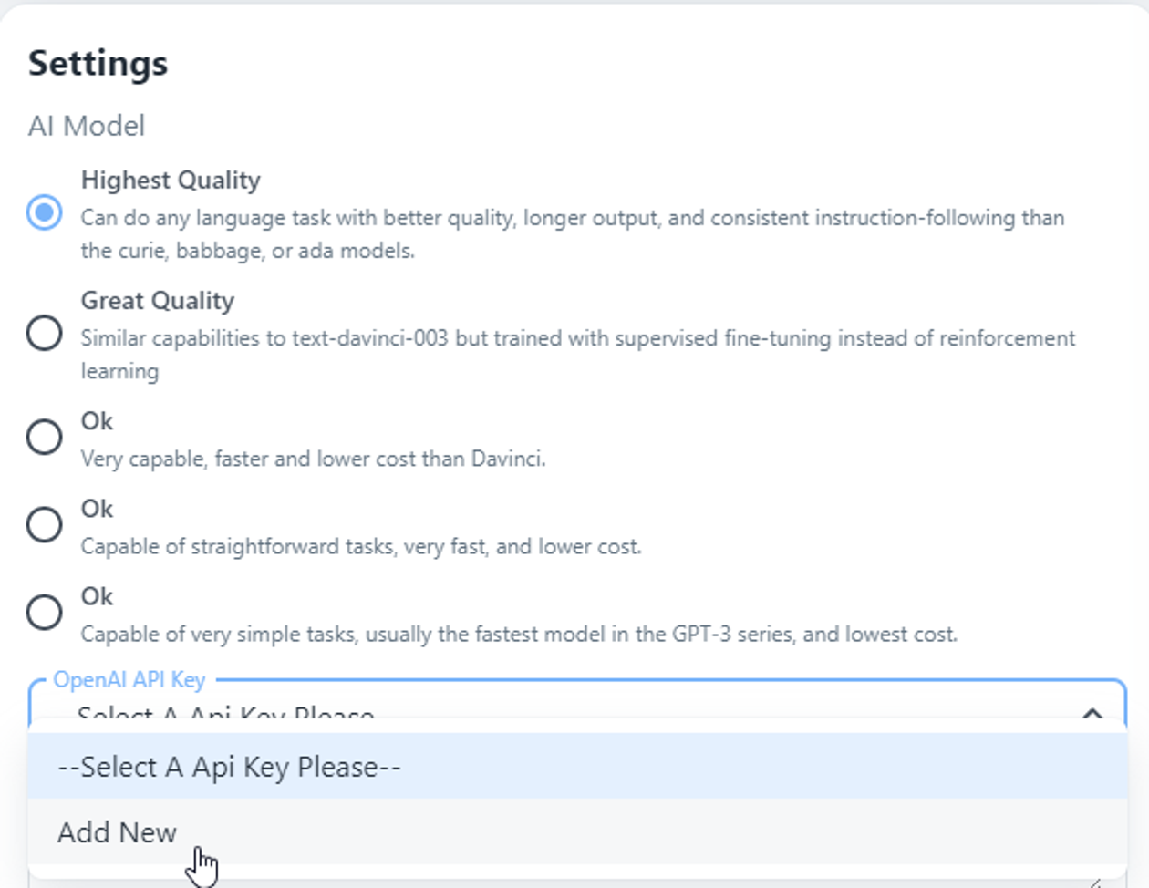 To set your OpenAI API key in your AI Chat Bot, follow these steps: