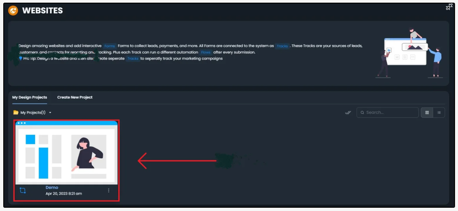 Navigate to Websites > Click your Website and it will take you to Website Builder