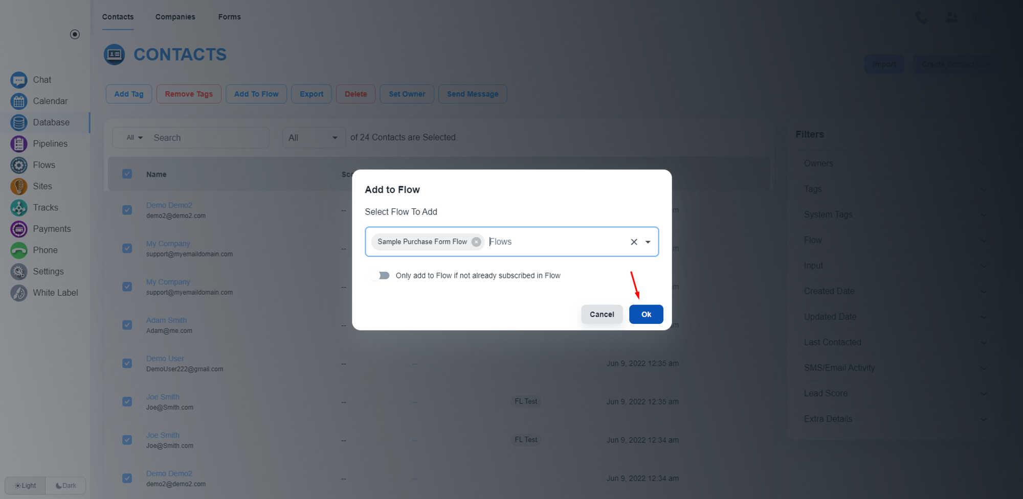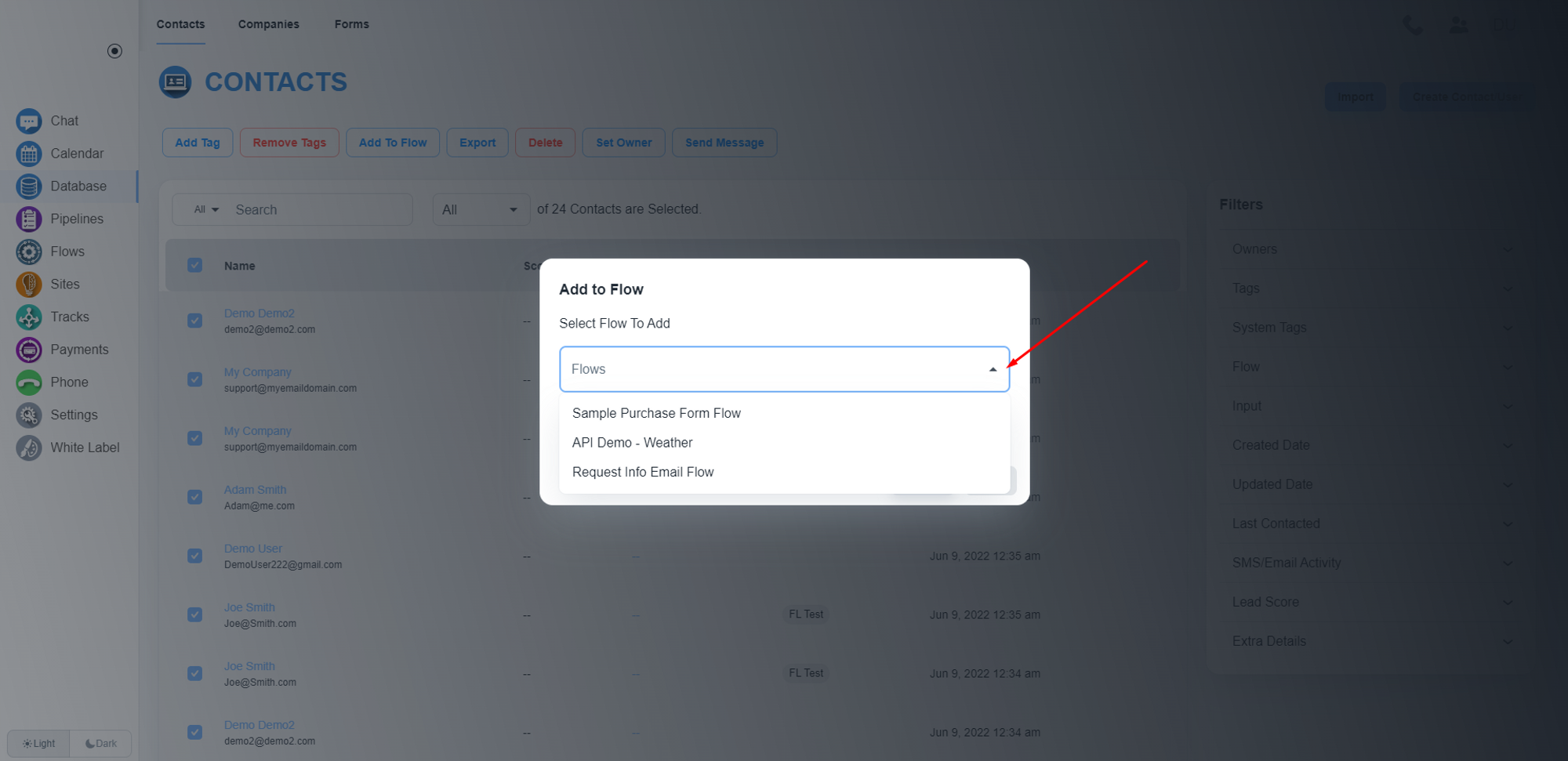 After selecting all contacts, click on the ‘Add To Flow’ button to add all contacts to a flow
