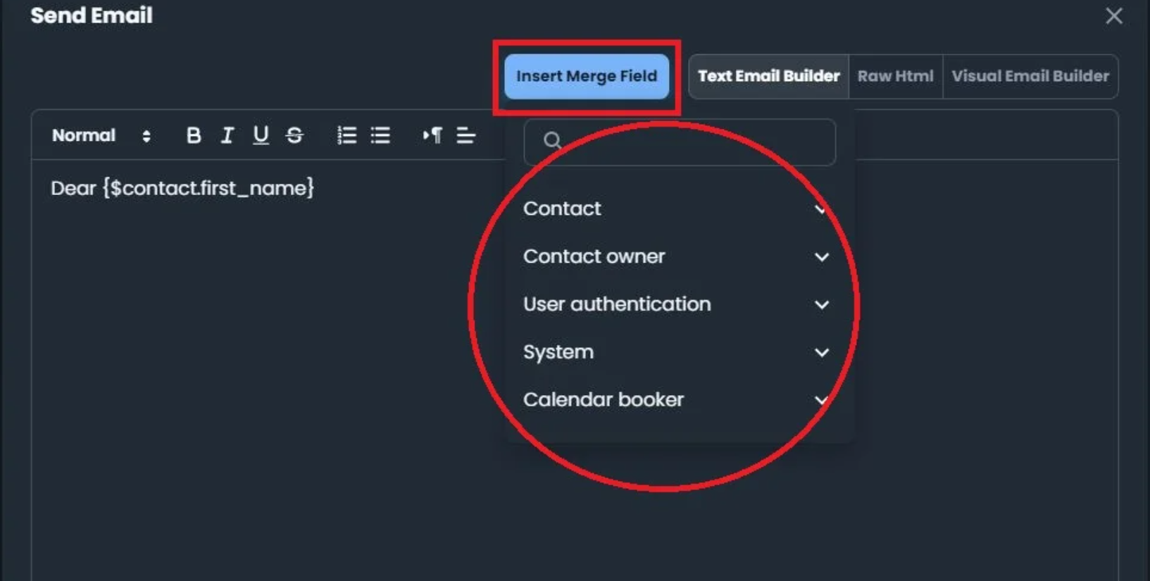 Now click on the "INSERT MERGE FIELD" to add the dynamic fields