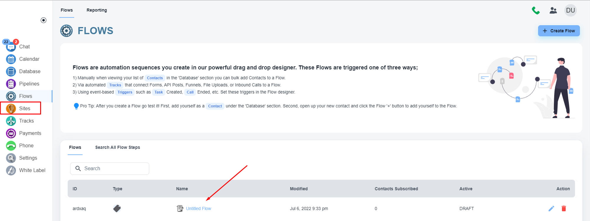 Please, navigate to the ‘Flows’ on the left side menu bar and open your flow in the flow editor.