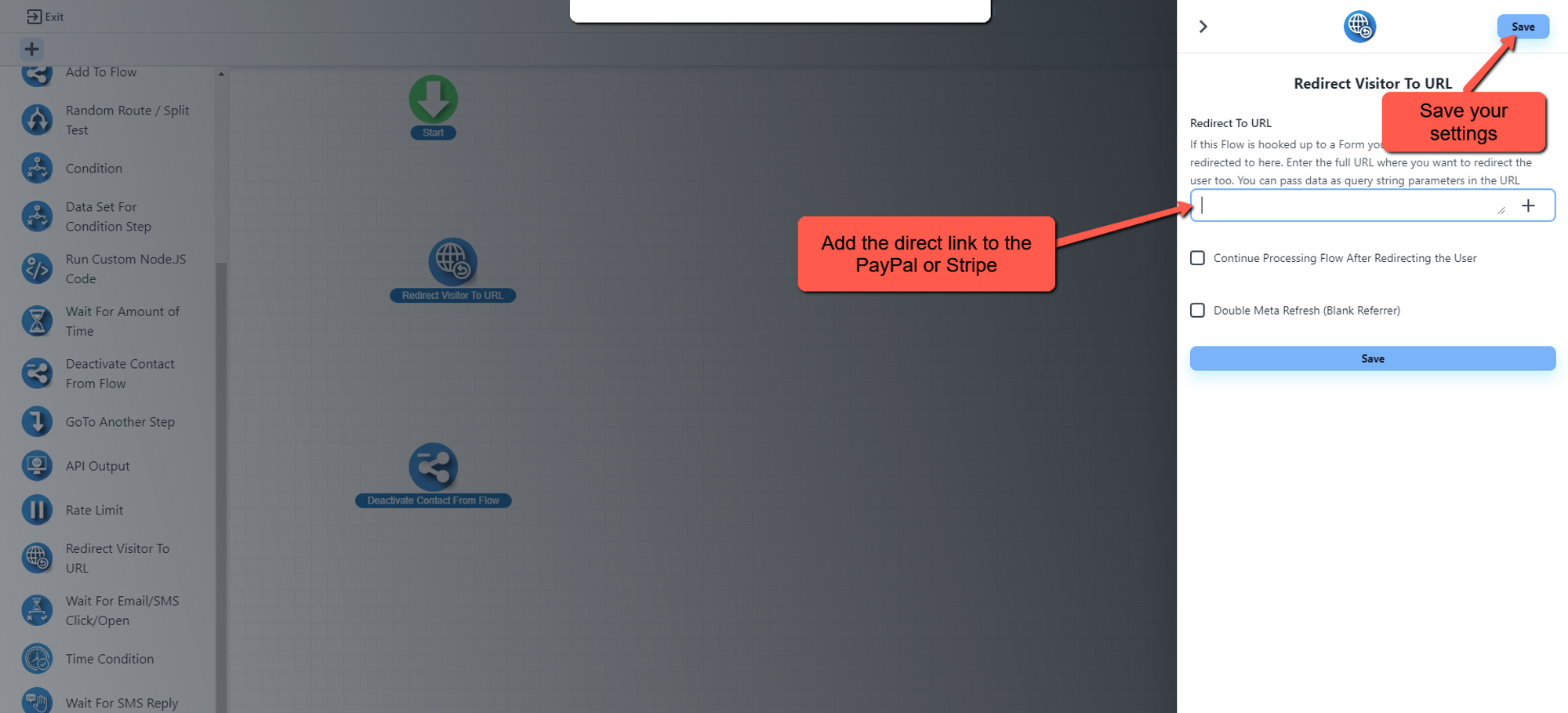 Select the Redirect Visitor to URL