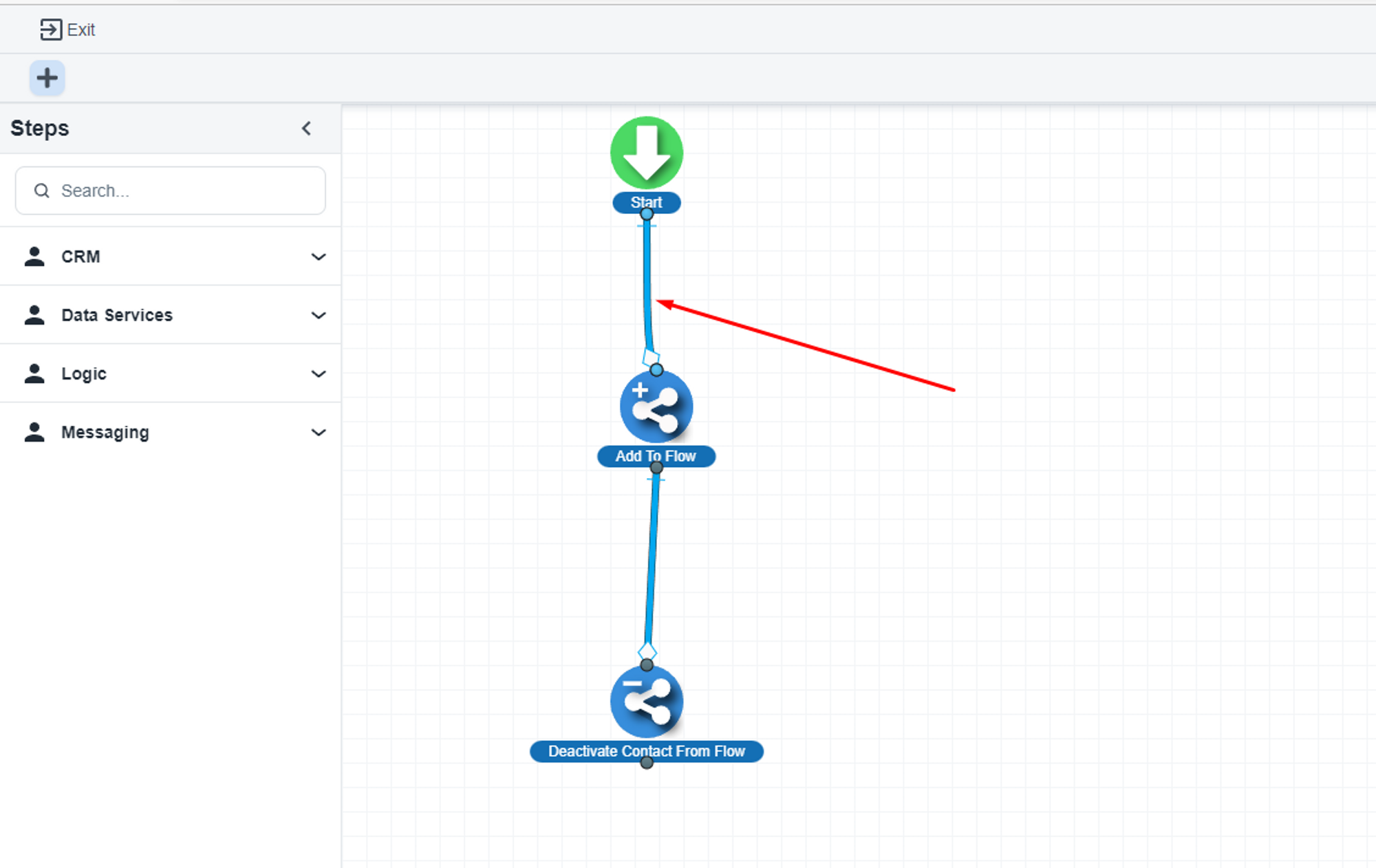 Please, select the step connecting line and right click and select ‘Delete’ option