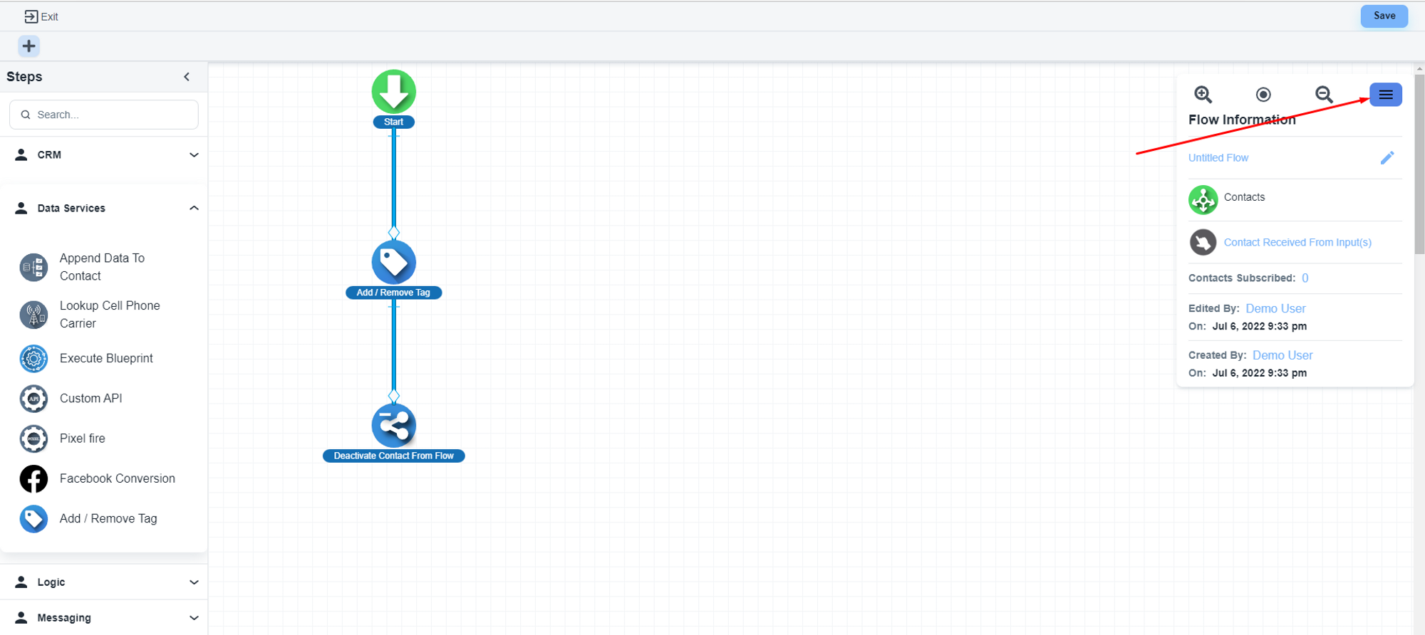 Navigate to the flow builder by clicking the “Flows” on the left side menu. Then when you have the flow page open, you will see a link to “Flows” on the top of your page. Please click that. Click on the ‘Create Flow’ button.