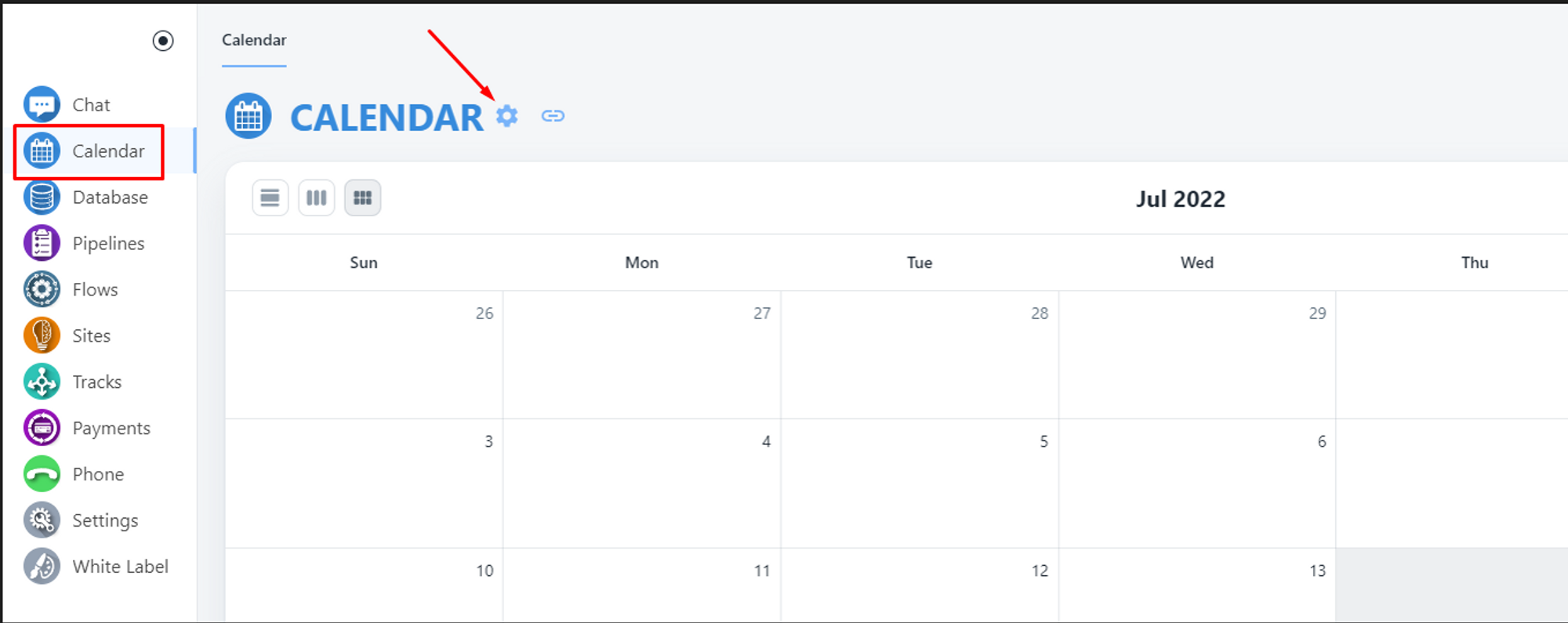 First, you need to click on Calendar from the left bar menu then click on the setting icon.