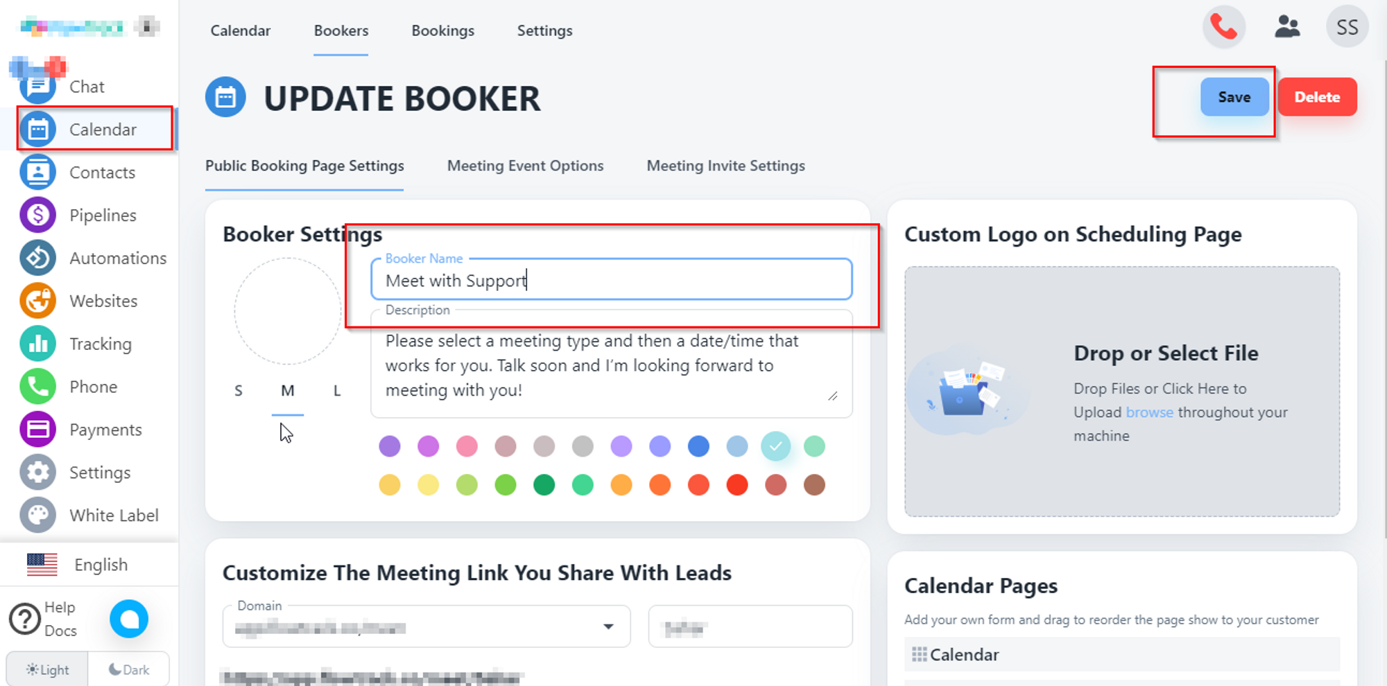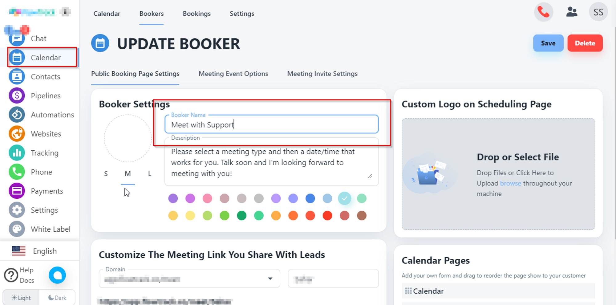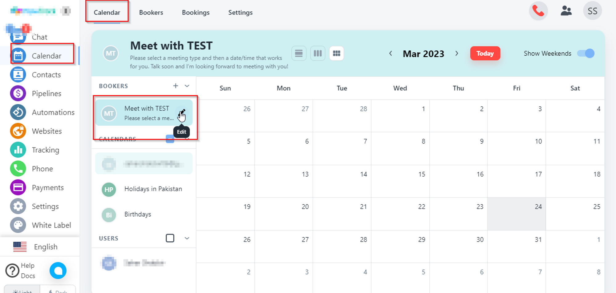 1. First, you need to click on Calendar from the left bar menu then click on the Bookers option.