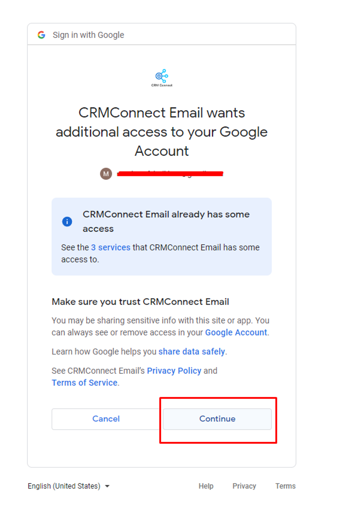 The system will lead you to connect your Gmail/Google Workspace account