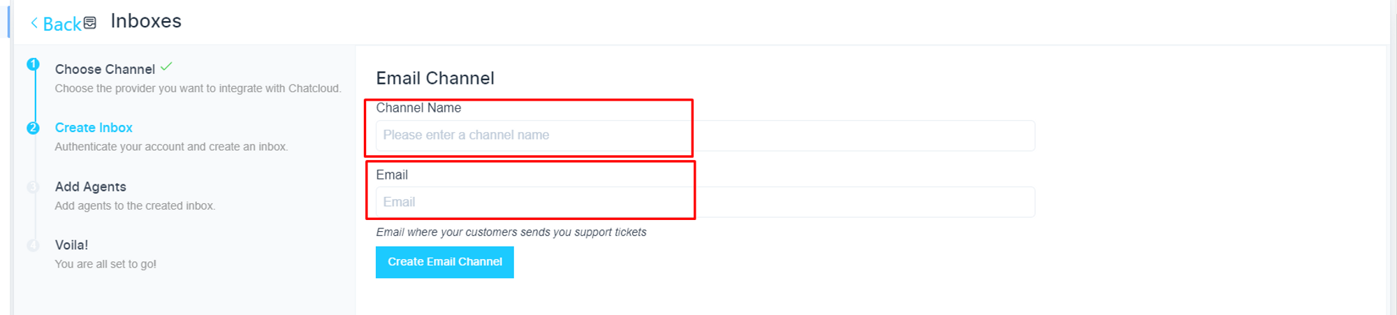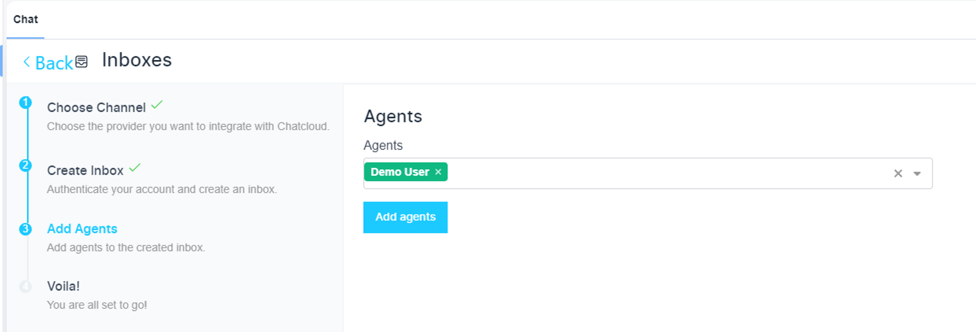 Please, navigate to the ‘Chat’ on the left menu bar. Once the page is opened and clicked on the ‘Inbox’ on the top menu bar. Finally, click on the ‘Add Inbox’ button.