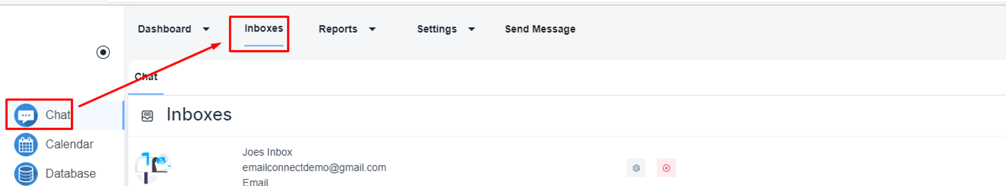 Please, navigate to the ‘Chat’ icon on the left menu bar. Once the page is loaded, click on the e ’Inbox’ menu on the top menu bar.