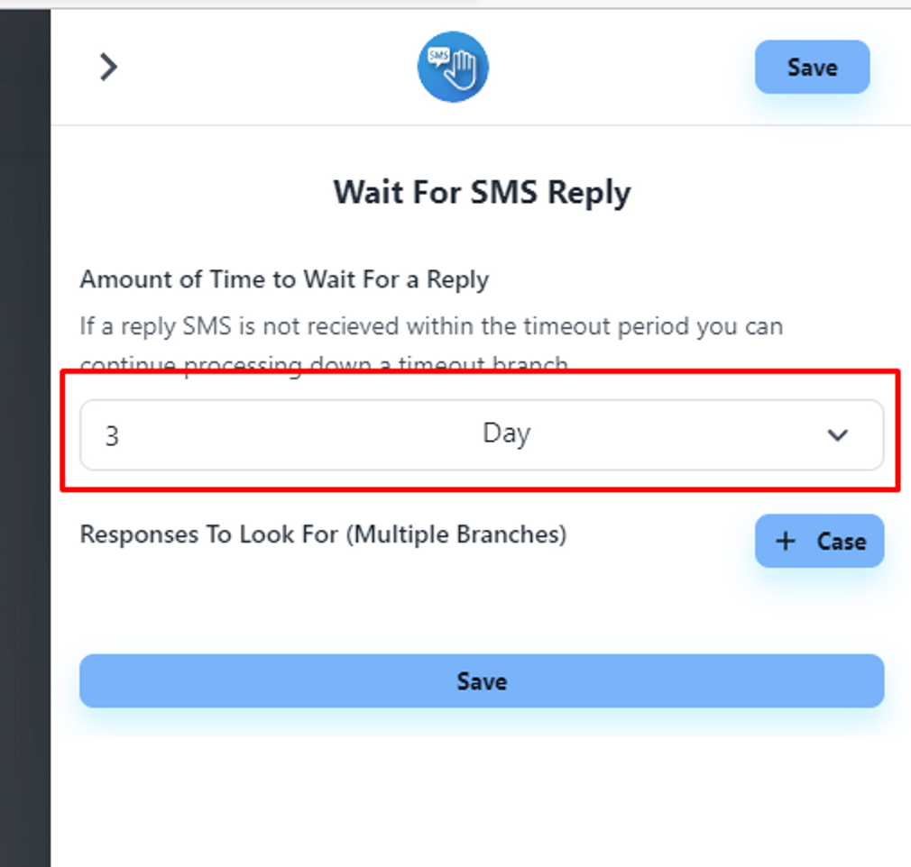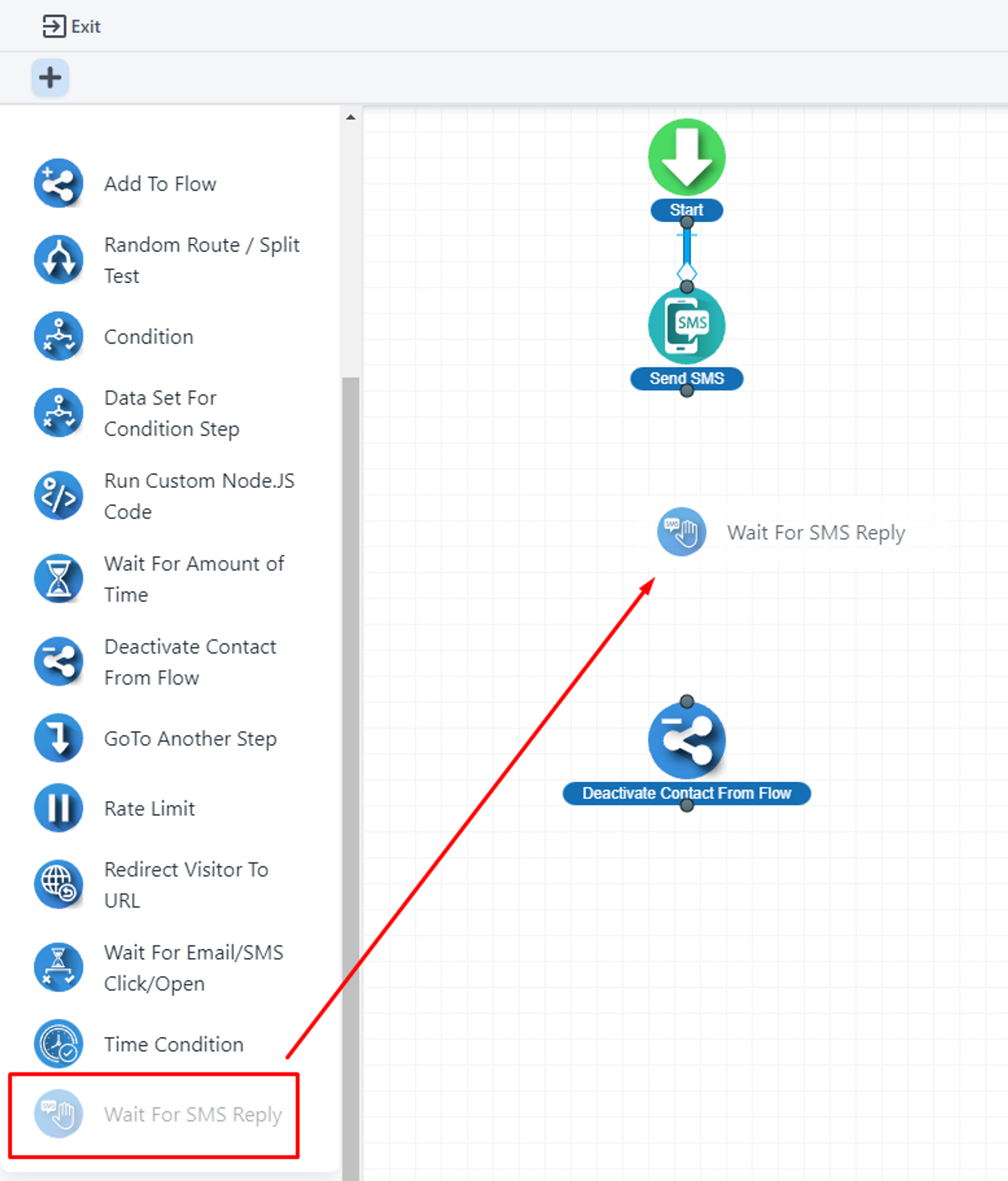 Add the ‘Wait For SMS Reply’ step.