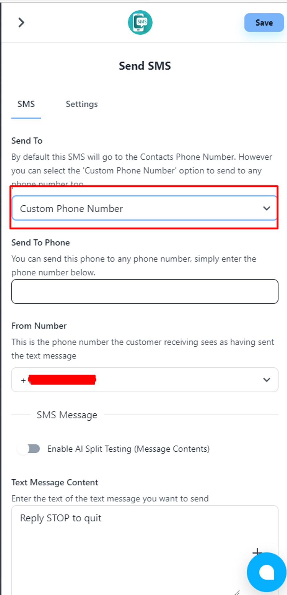 On the settings page, select ‘Custom Phone Number’ and pass the phone number on which you want to get a notification.