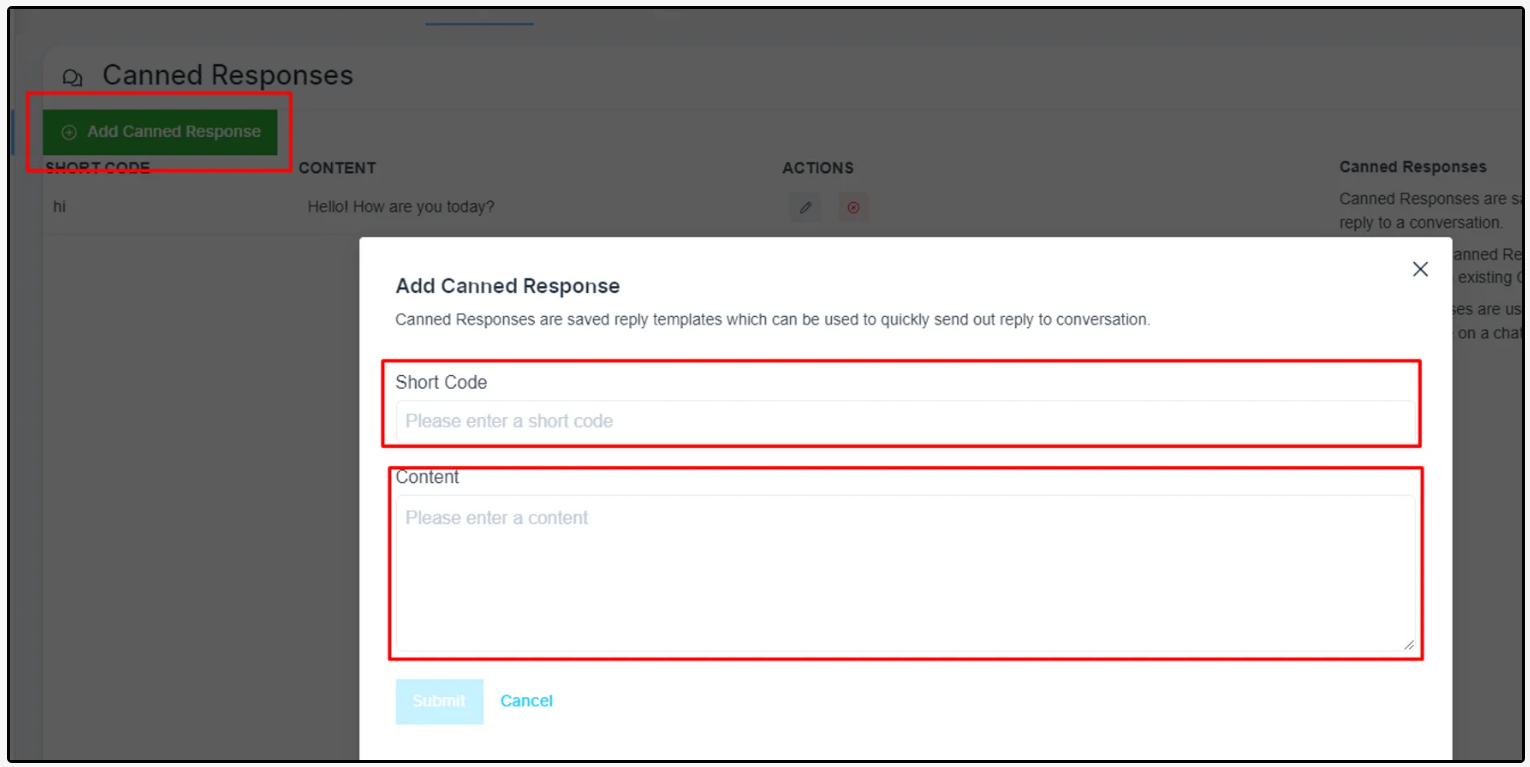 Please, click on the ‘Add Canned Response’ button