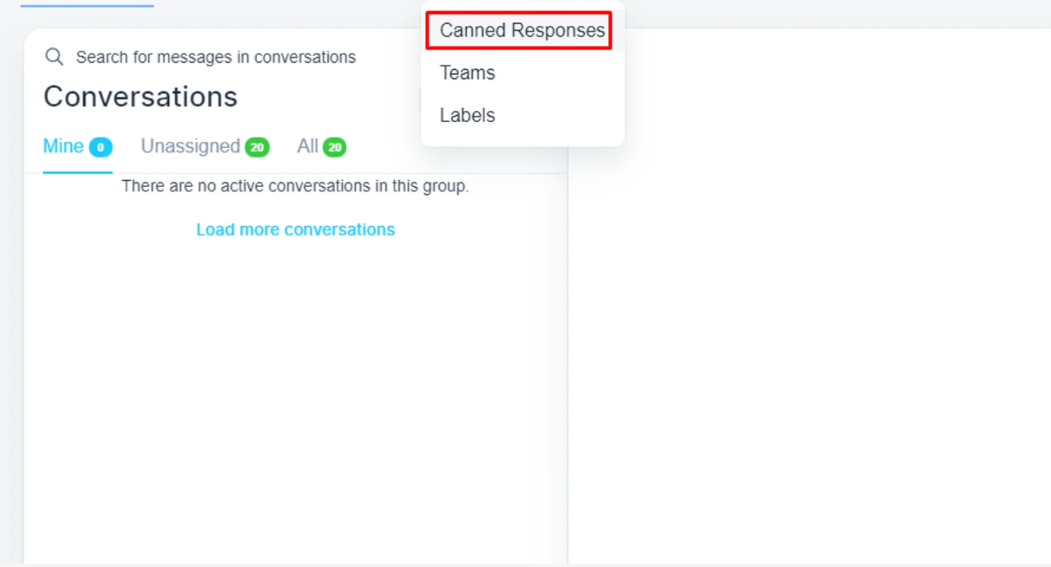 On the top menu bar, the is a ‘Setting’ menu. Please, click on the dropdown and select ‘Canned Responses’