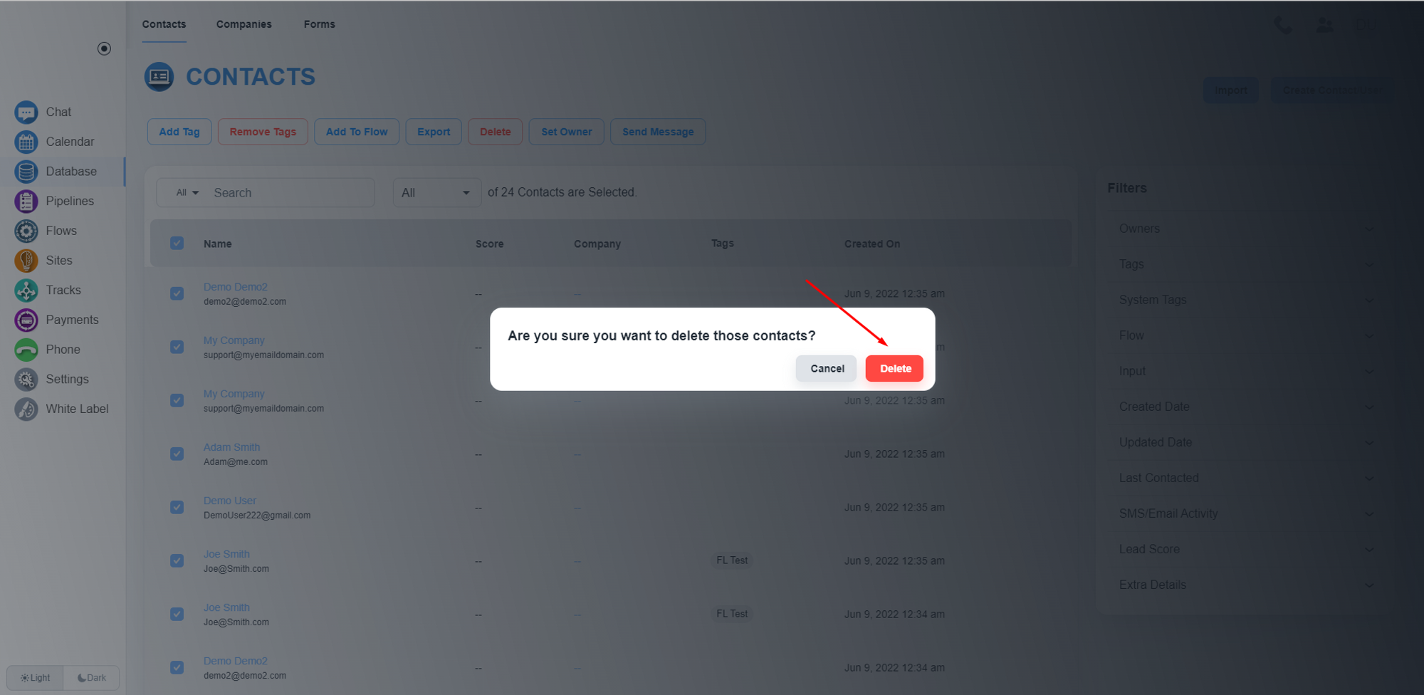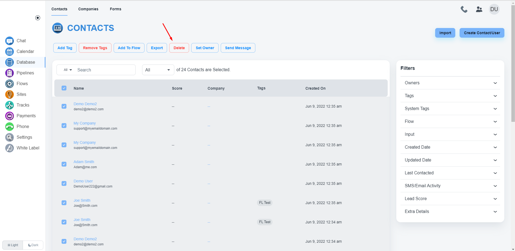 After selecting all contacts, click on the ‘Add To Flow’ button to add all contacts to a flow