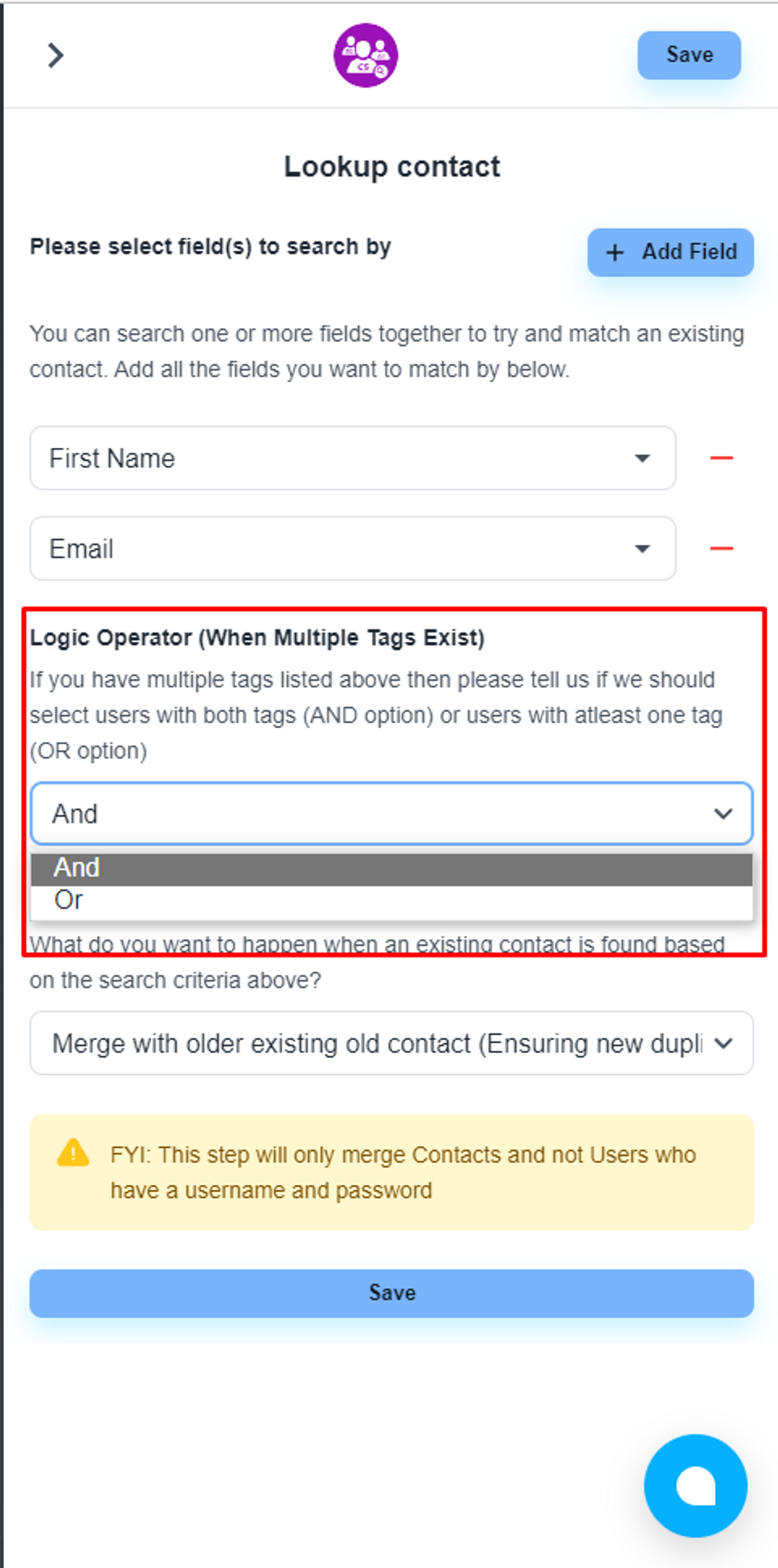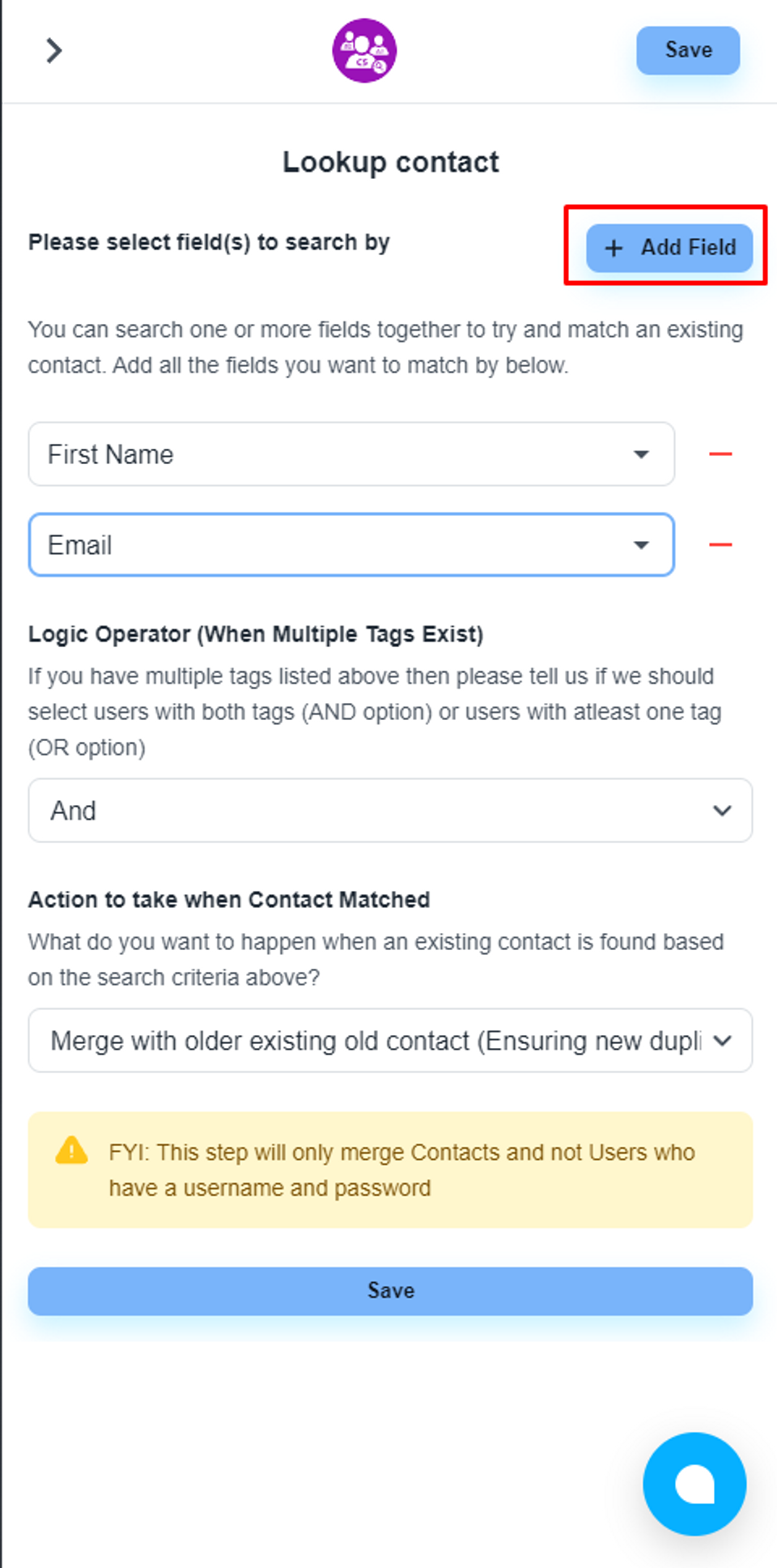 You can set multiple fields as conditions by clicking the ‘Add Field’ icon