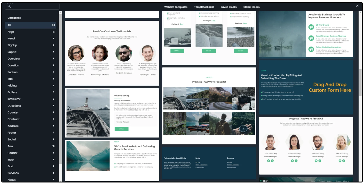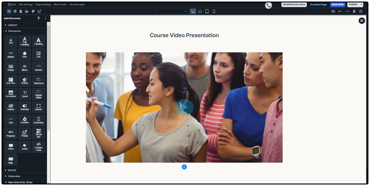 You can easily make courses. By using the website builder, the possibilities are endless with the drag and drop style of the builder. Different kinds of elements can be used to craft your pages and design them to your liking.