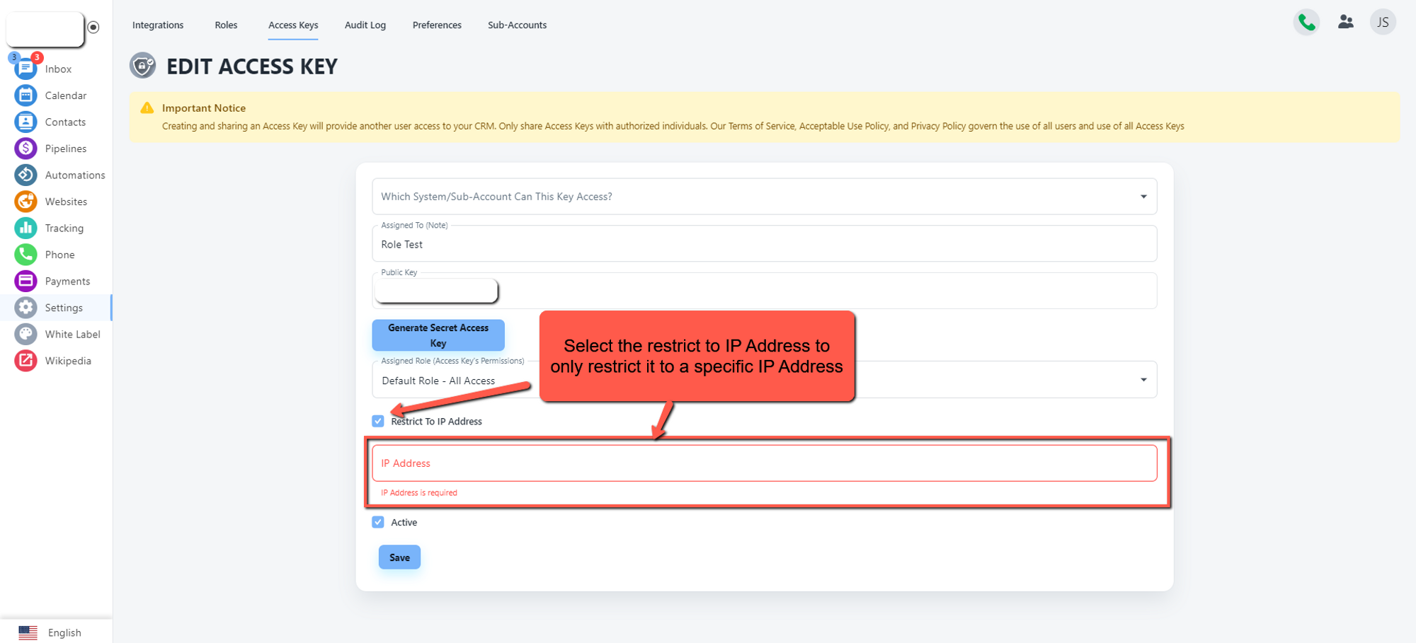 The access key is attached to every sub-account/User, you can find it in the Contact/Database section