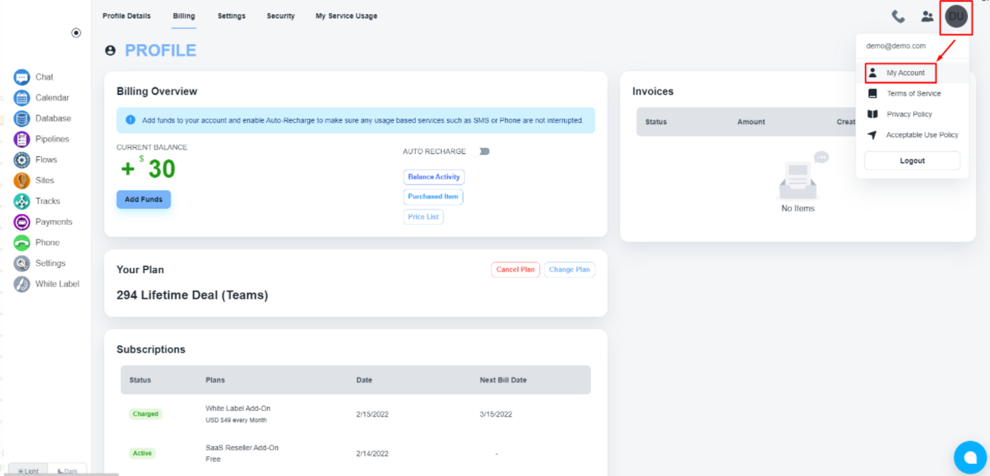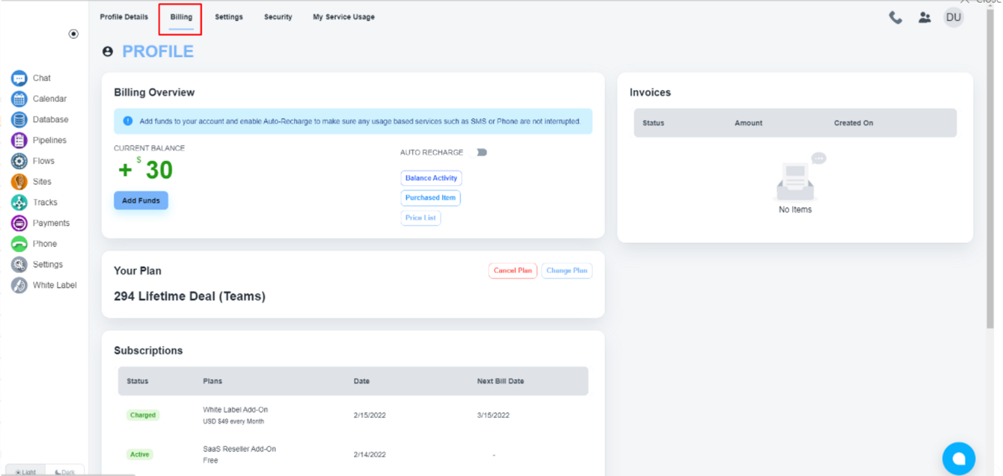 System offers you the feature to auto-recharge your account to ensure any usage-based services such as SMS or Phone are not interrupted. You only need to enable this toggle to activate the auto-recharge service.
