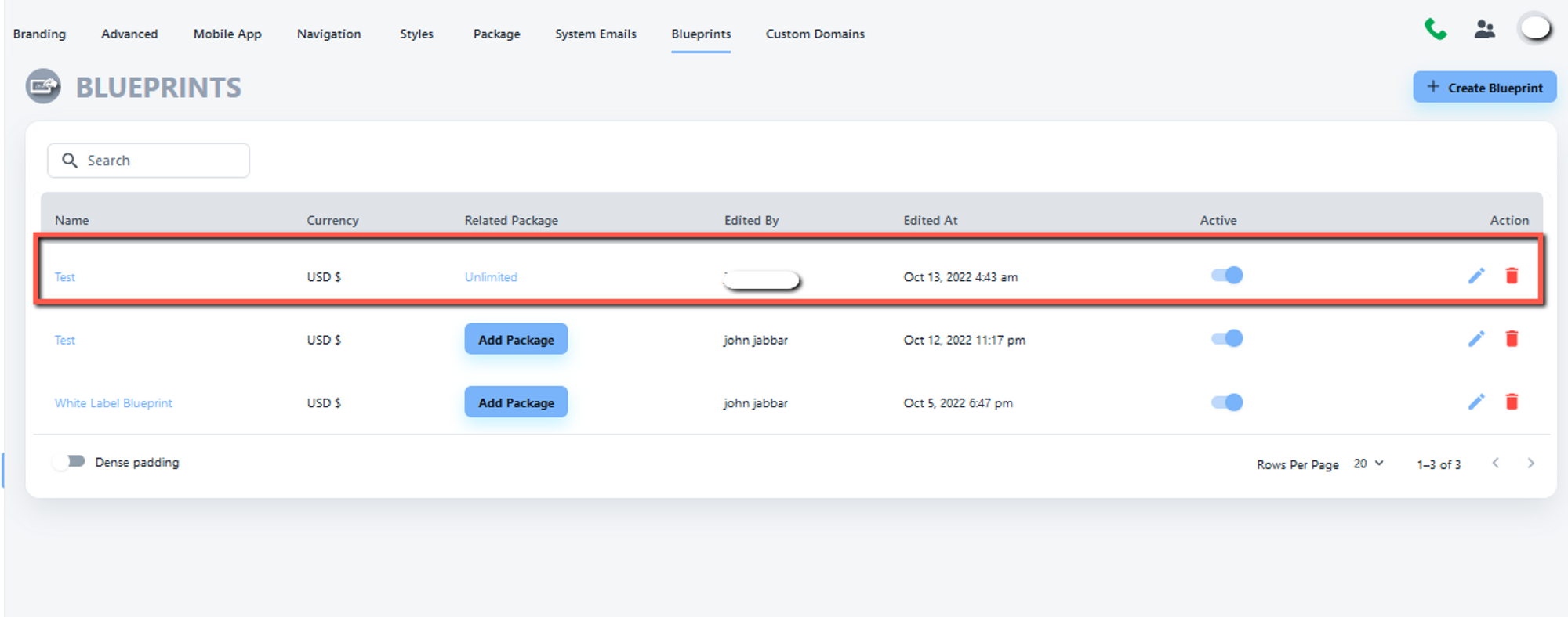 4. You can create a blueprint with the package or without, If you create without one later you need to add the package to this blueprint.