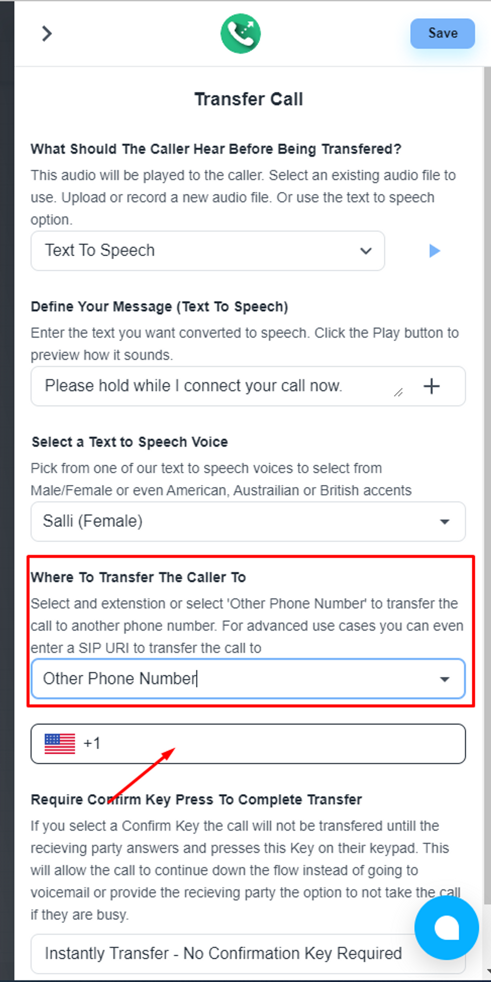 Add the ‘Transfer Call’ step.