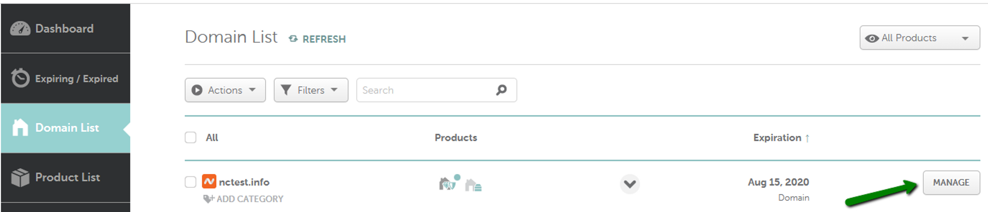 After signing in to your NeamCheap account, Select Domain List from the left sidebar and click on the Manage button next to your domain