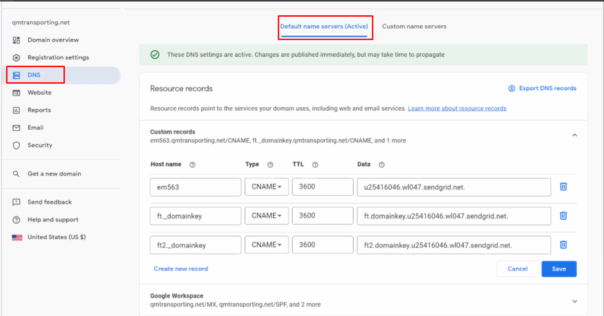 Steps to add DNS record to Google Account