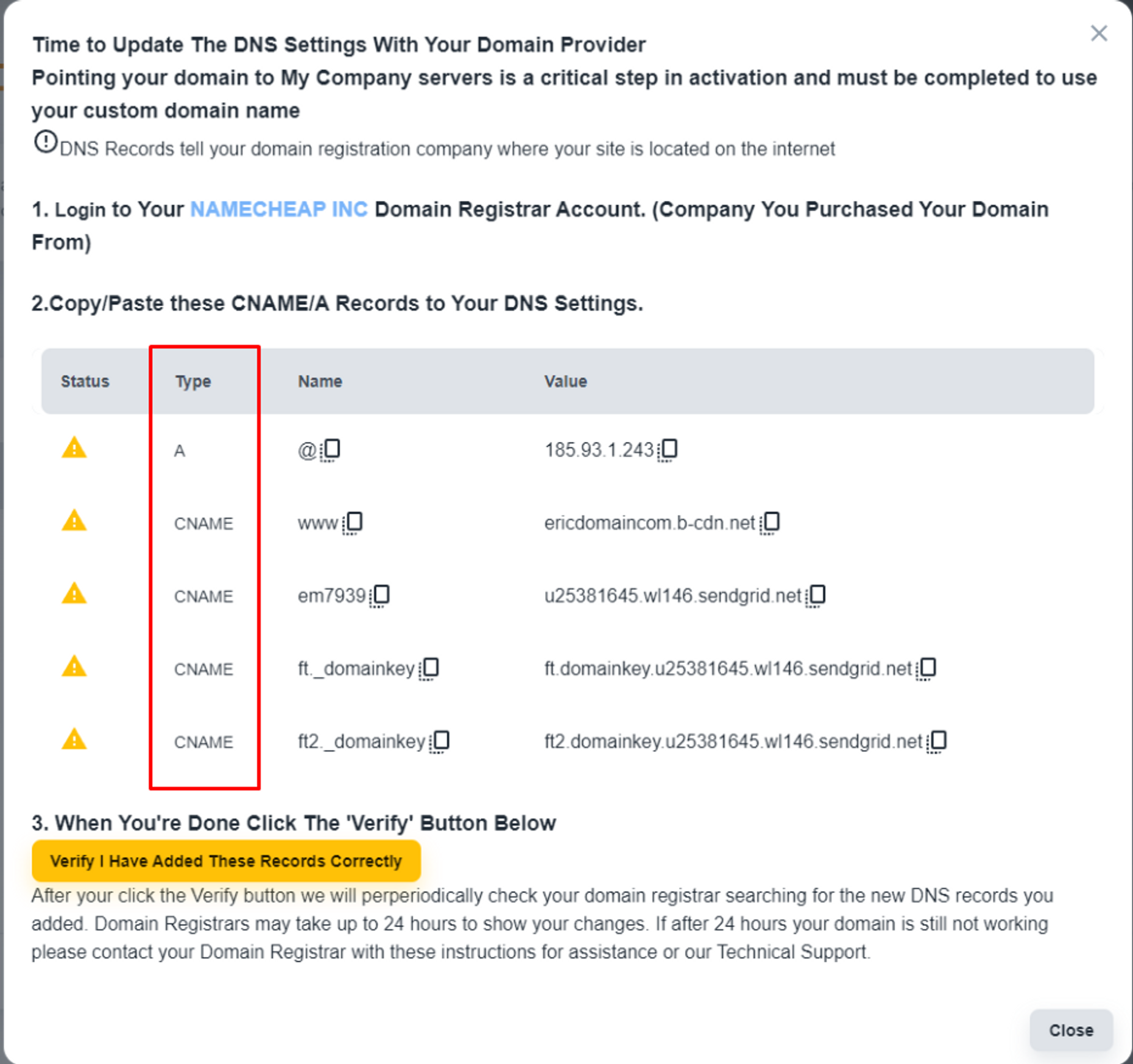 ‘CNAME’ type of record