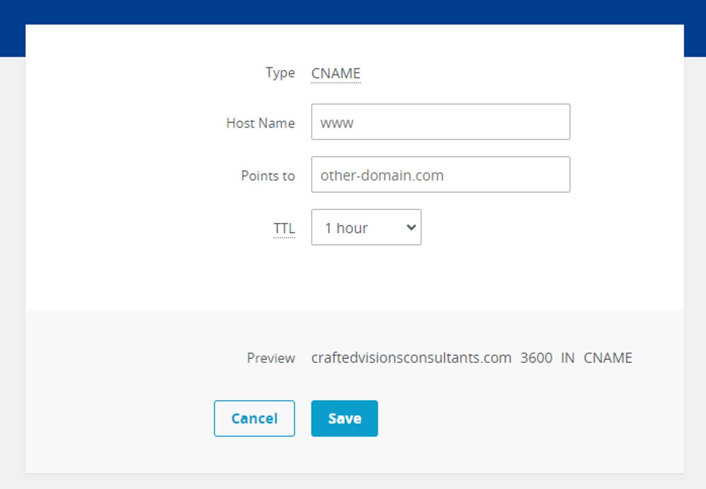 Now, follow the same process to add the other DNS records for the email service. But time, you will have to select the 'CNAME' option.