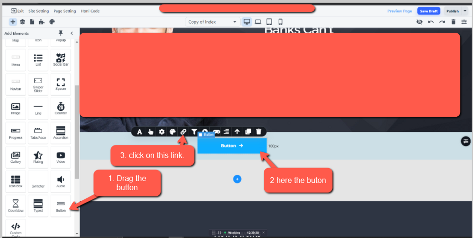 2. Then you will edit that specific button, by hovering on that button and select the link icon.