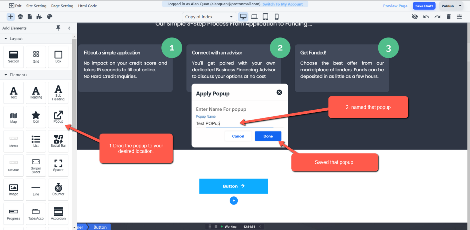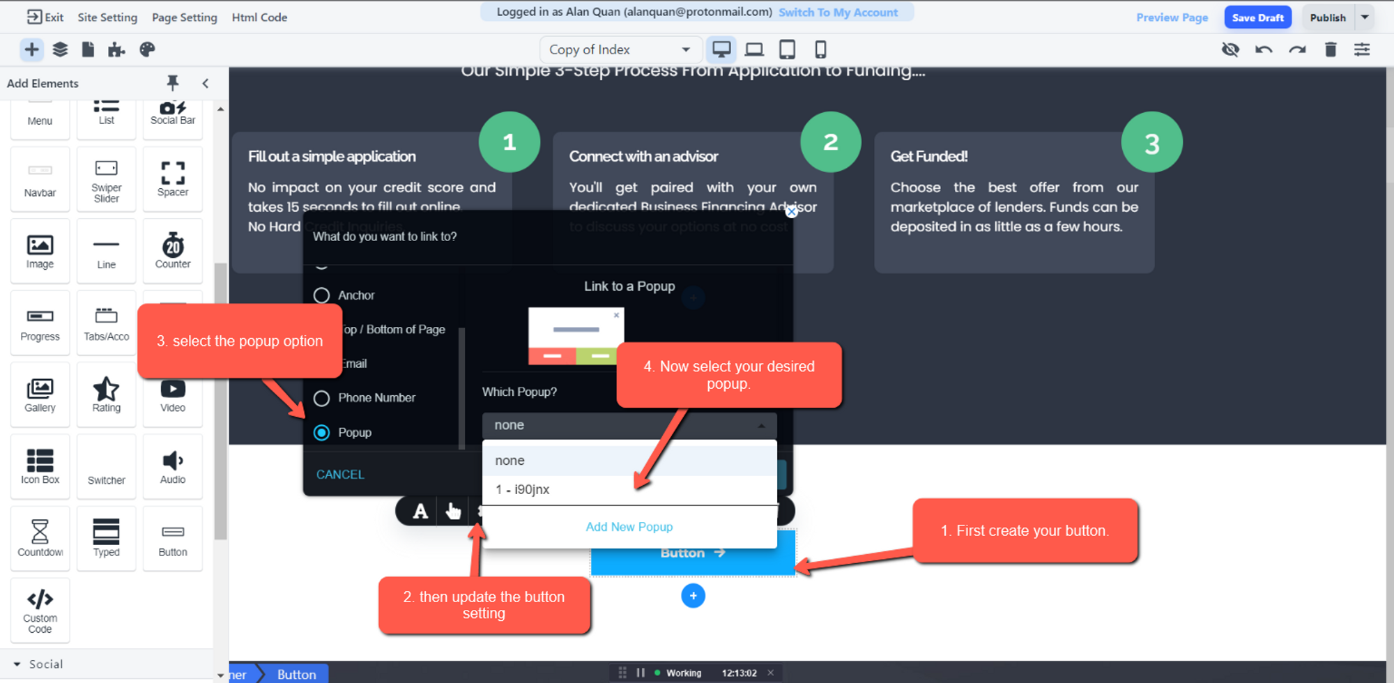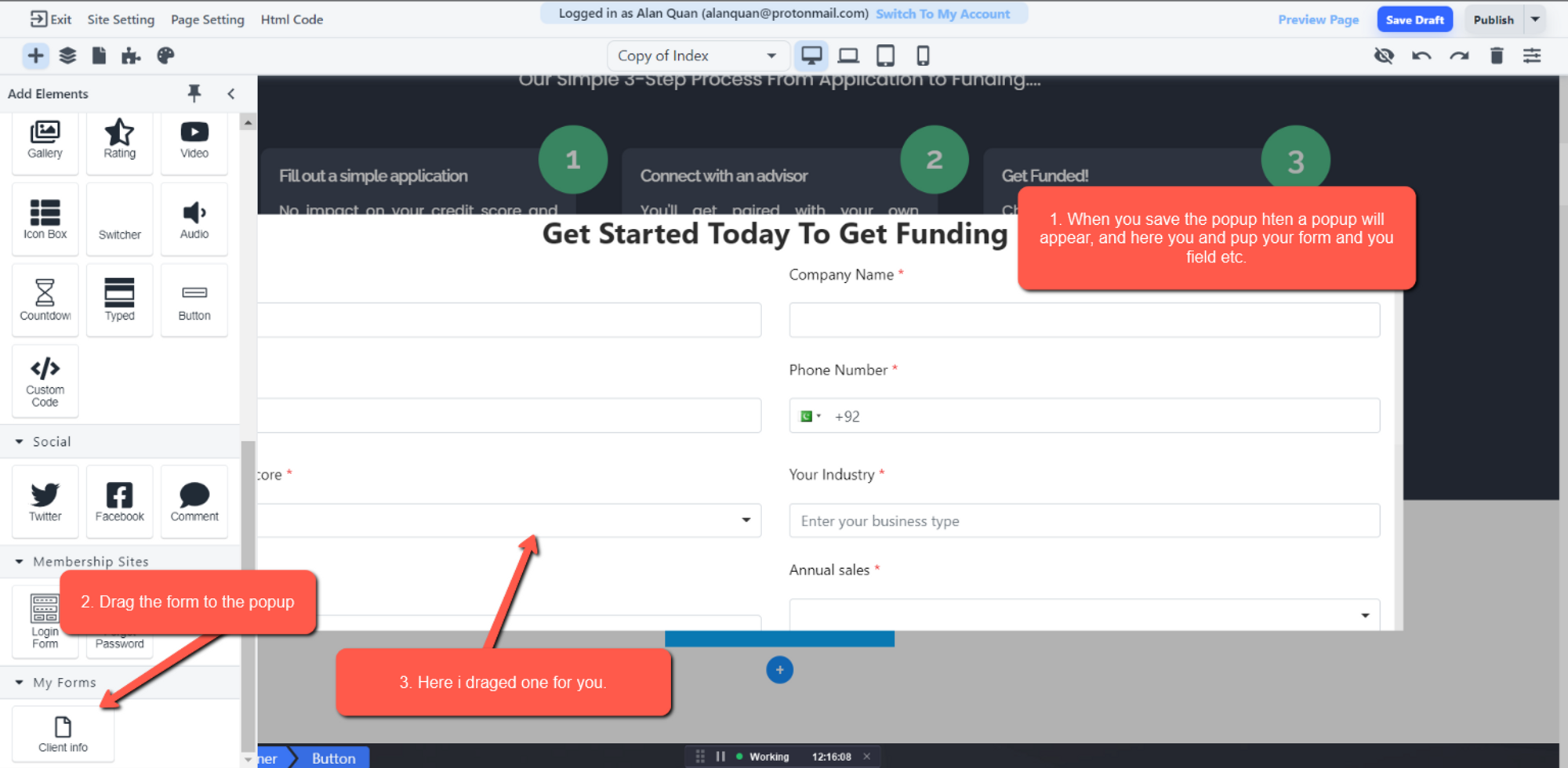 4. When you select then popup from the dropdown. then a pop will appear on the window their you will add your form.