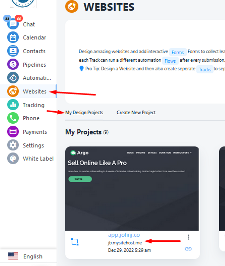 1. Click on the website tab from the left side, click on any of your websites and open the site in the website builder.