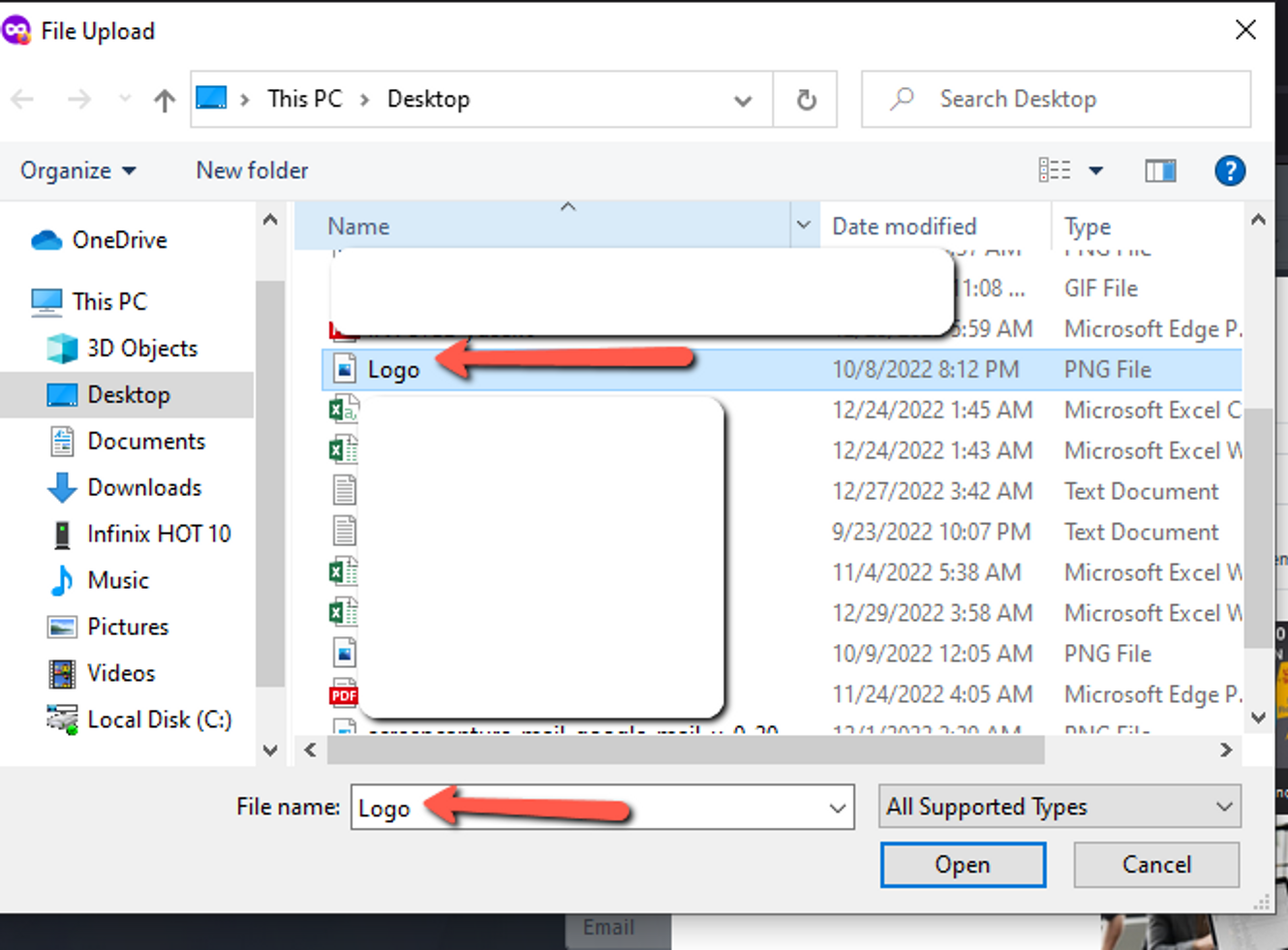 3. Select the file in your system and add it here.
