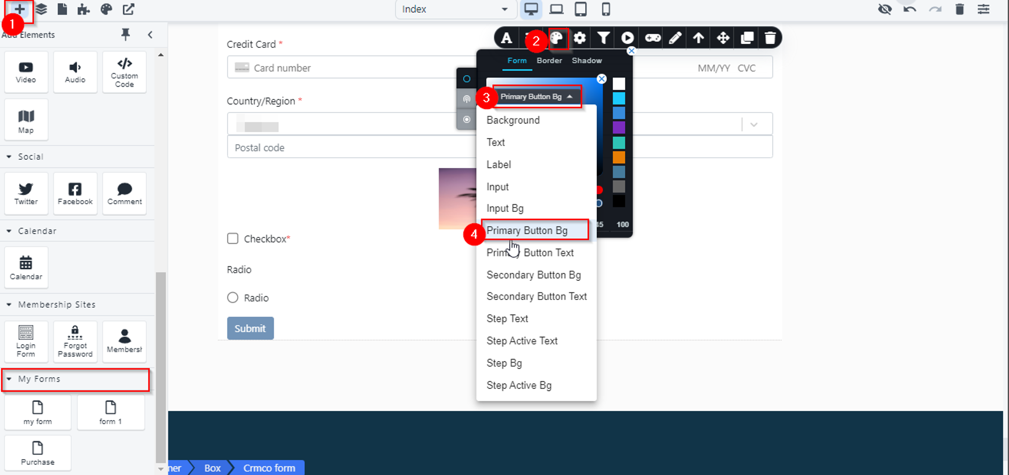 1. If you didn’t add your form to your site simply add your form to your website by clicking + icon which is shown on the top left corner of your site and add your desire form.