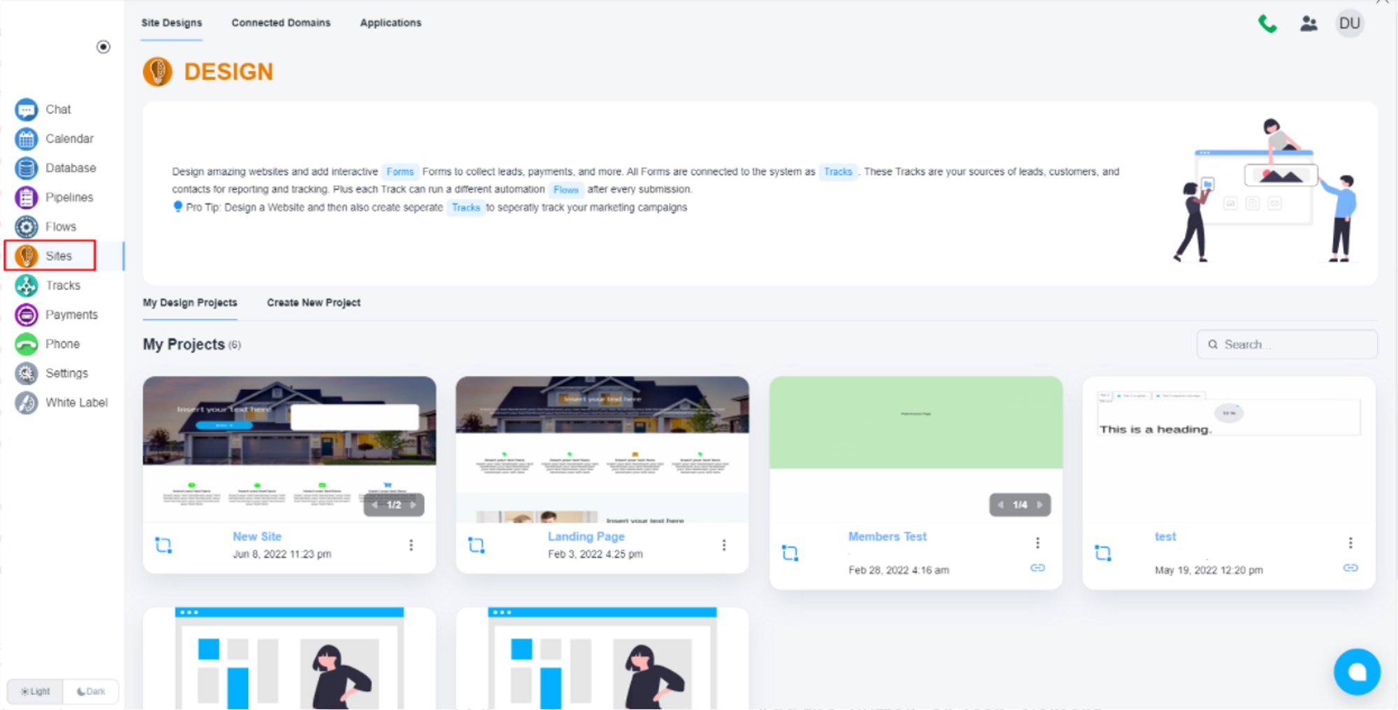 Please, navigate to the ‘Sites’ on the left side menu and open your concerned project