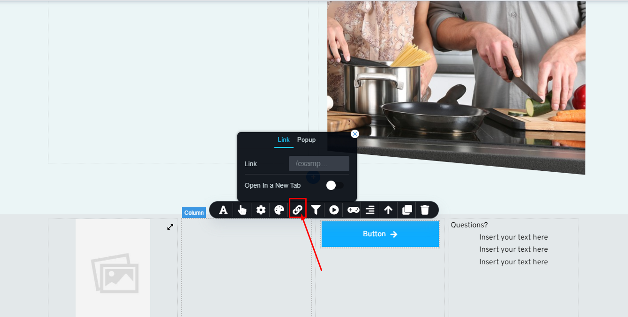 Please, drag the ‘Button’ or “icon’ element to your concerned position