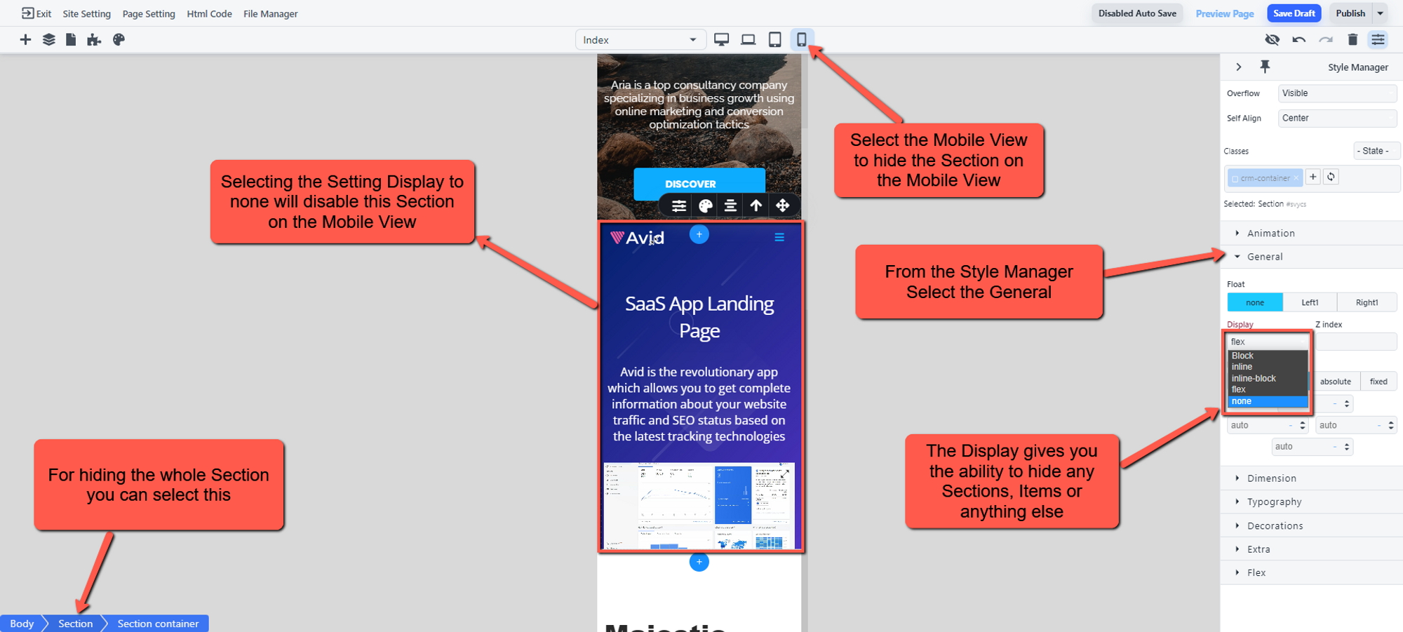 The Show Style Manager shows up all the settings where we can disable the Display inside the General settings