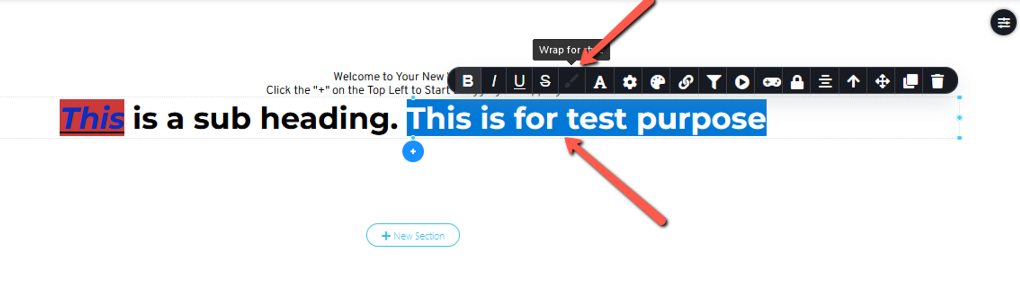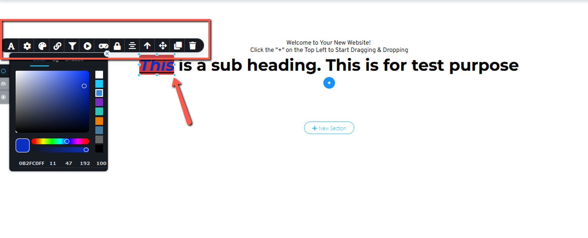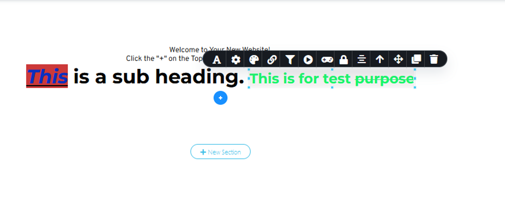 5. Click on the selected text then you see the new settings option, here you change the heading or text settings as you want.