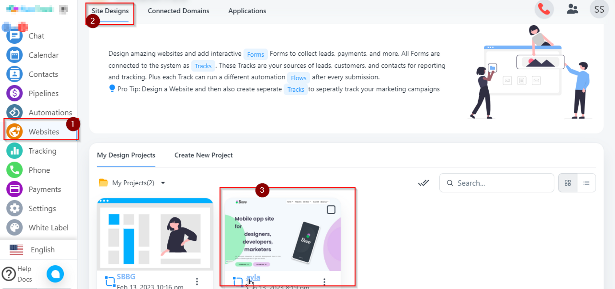 1. First, you need to click on Website from the left bar menu then click on the Site design option.